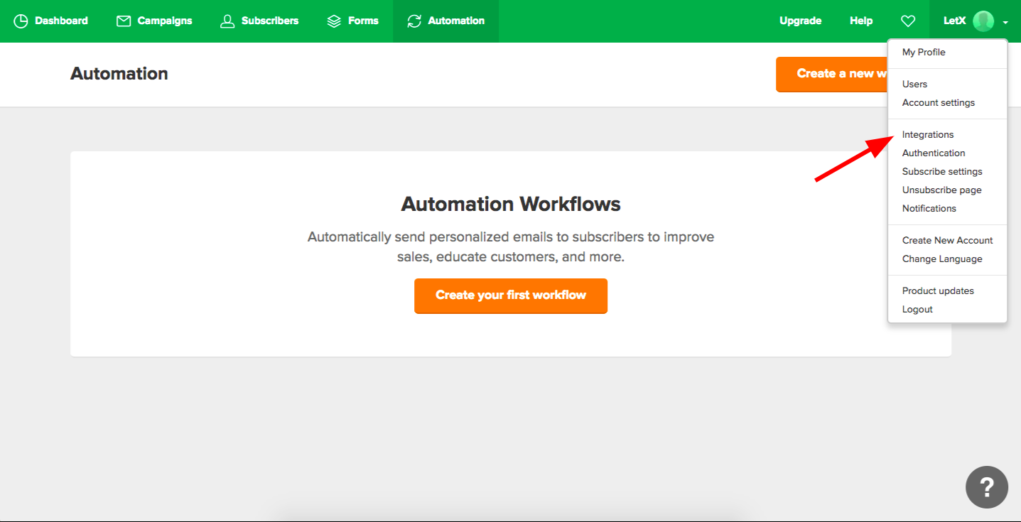 STEP 1: Login to your MailerLite account, go to the Navigation Bar, click on Integrations.