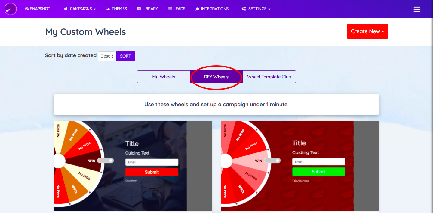 STEP 4: Under “DFY Wheels” you’ll be able to access all the base designs that have been fully customized for you. You can choose to do a one click import and easily create a campaign using the same.