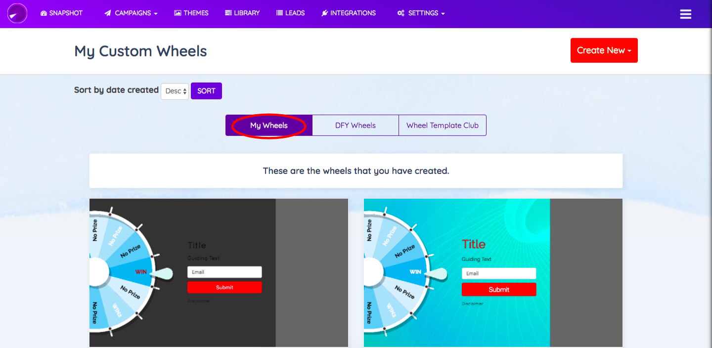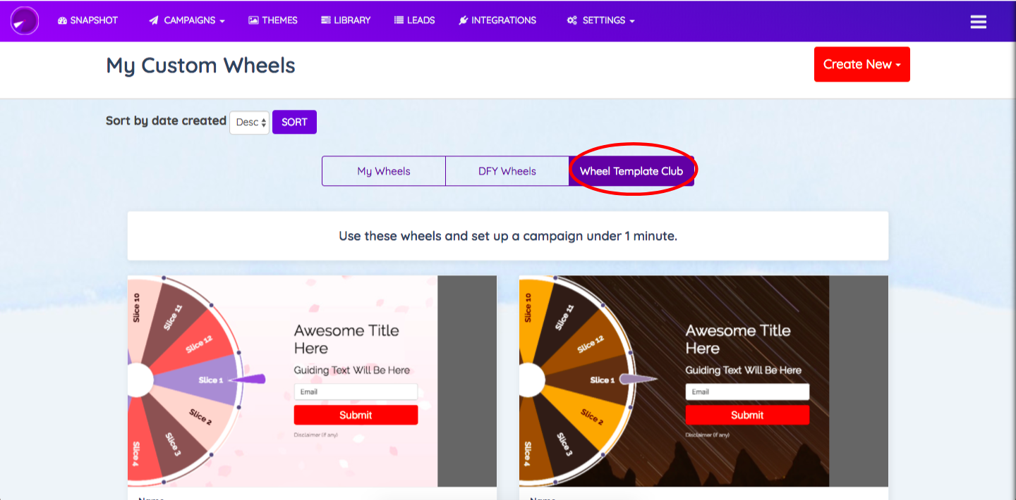 STEP 5: Under “Wheels Template Club” you’ll be able to access collection of professionally designed & top converting DFY wheel themes. The Collection consists of Wheel Themes designs based on various international festivals and events. You can also access creative abstract design themes in this collection.