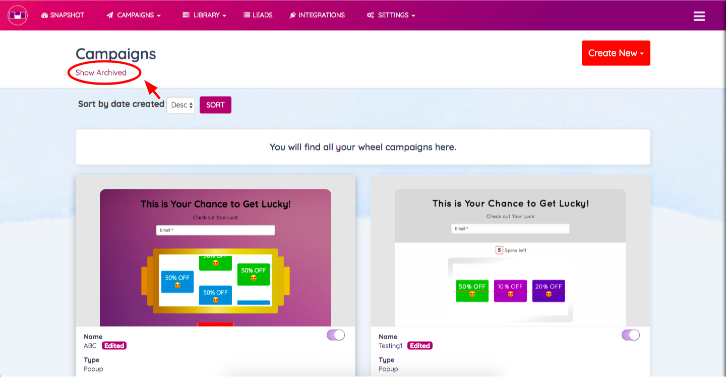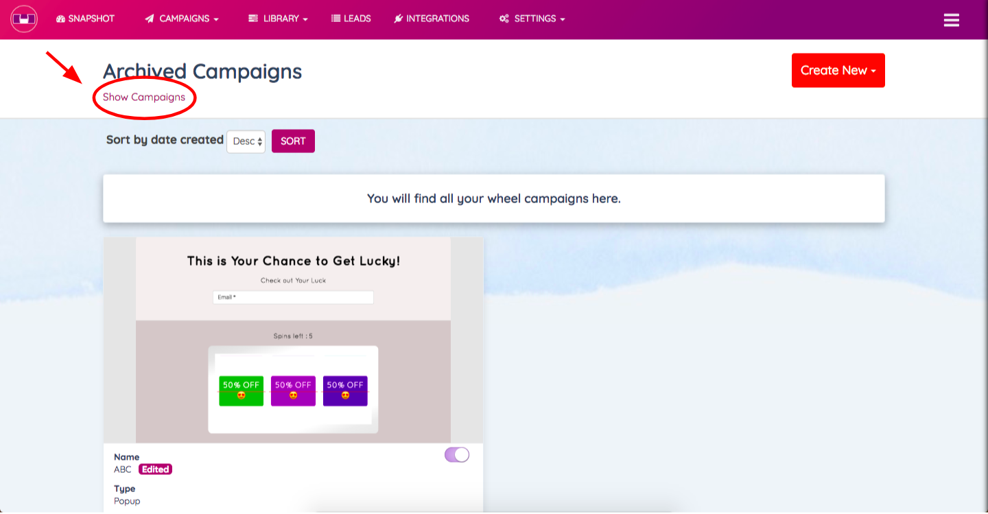 Click on “Show Campaigns” under the Archived Campaigns Head in order to go back to the Slot Campaigns.