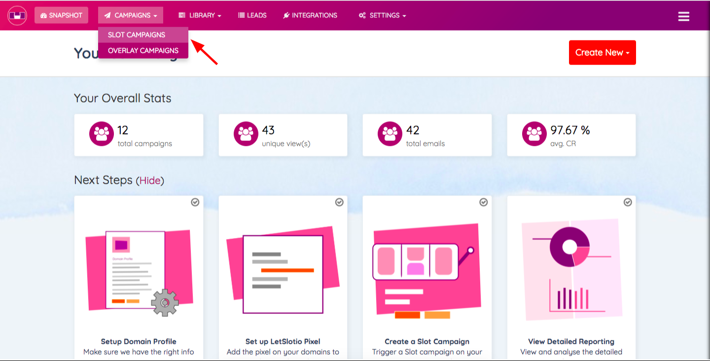 STEP 1: In your LetSlot.io Dashboard, go to “Campaigns”, select “Slot Campaigns” to be able to see all your campaigns.