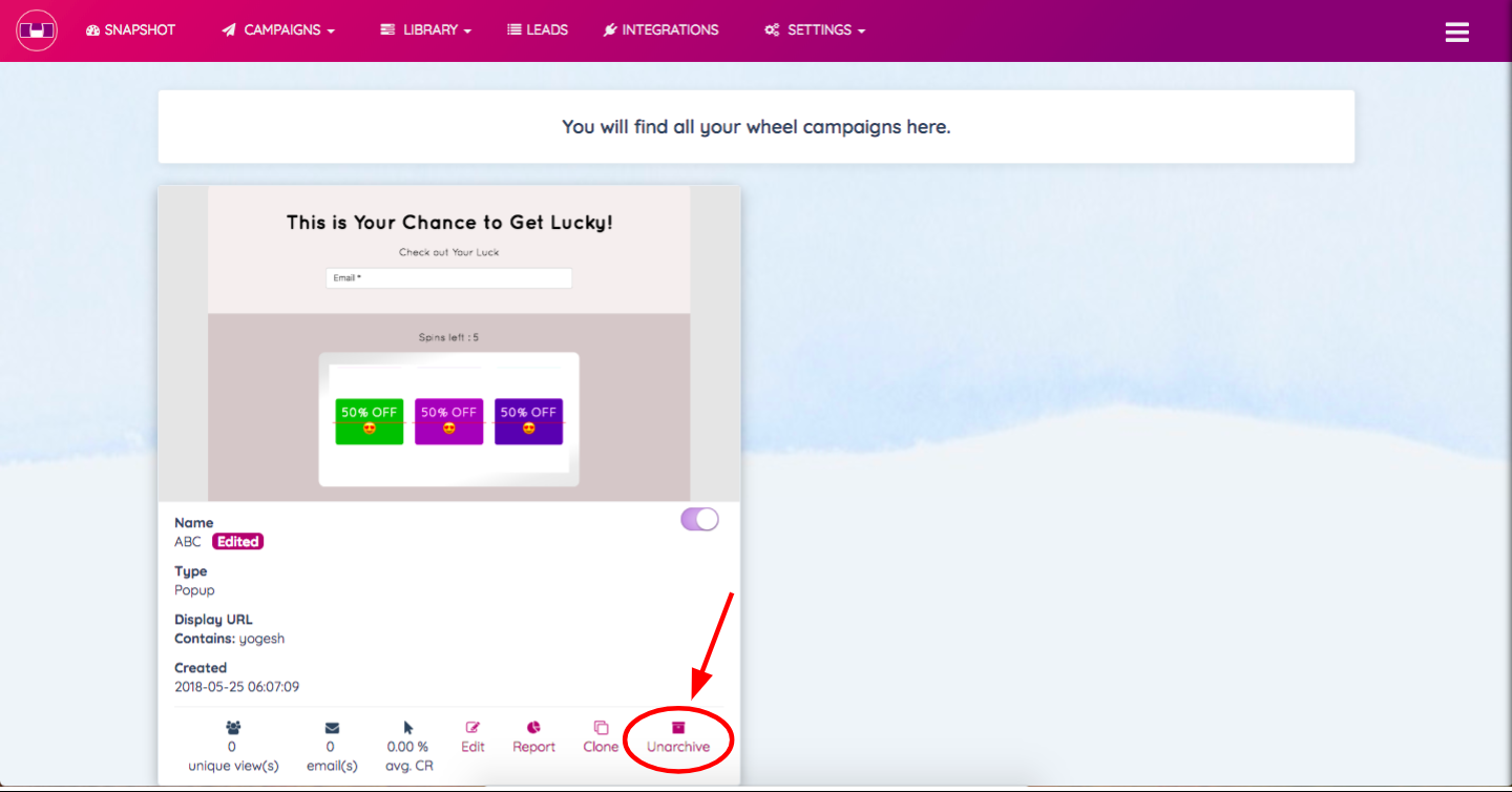 Click on “Unarchive” in order to put back the campaign in your Slot Campaigns.
