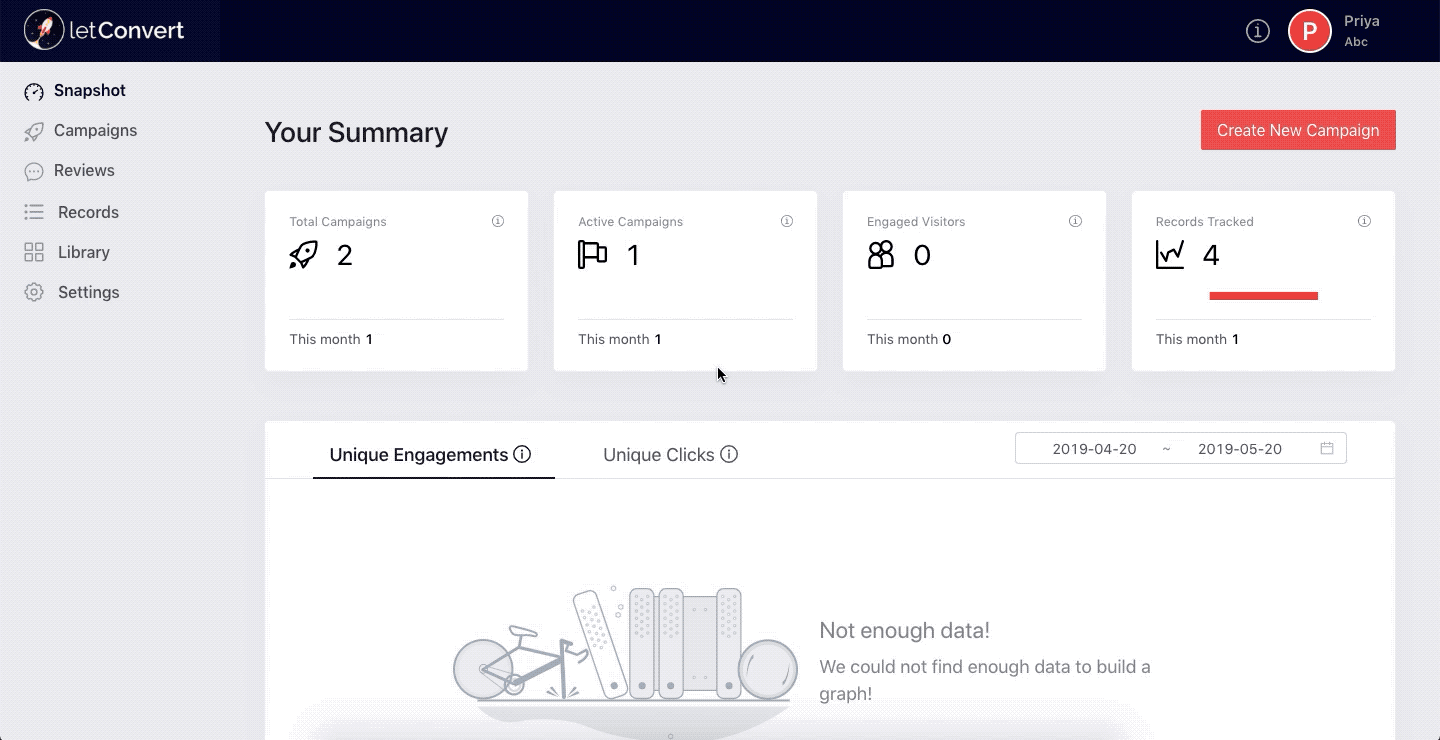 With LetConvert dashboard, it is a very easy & hassle-free to manage all the campaigns in one place.