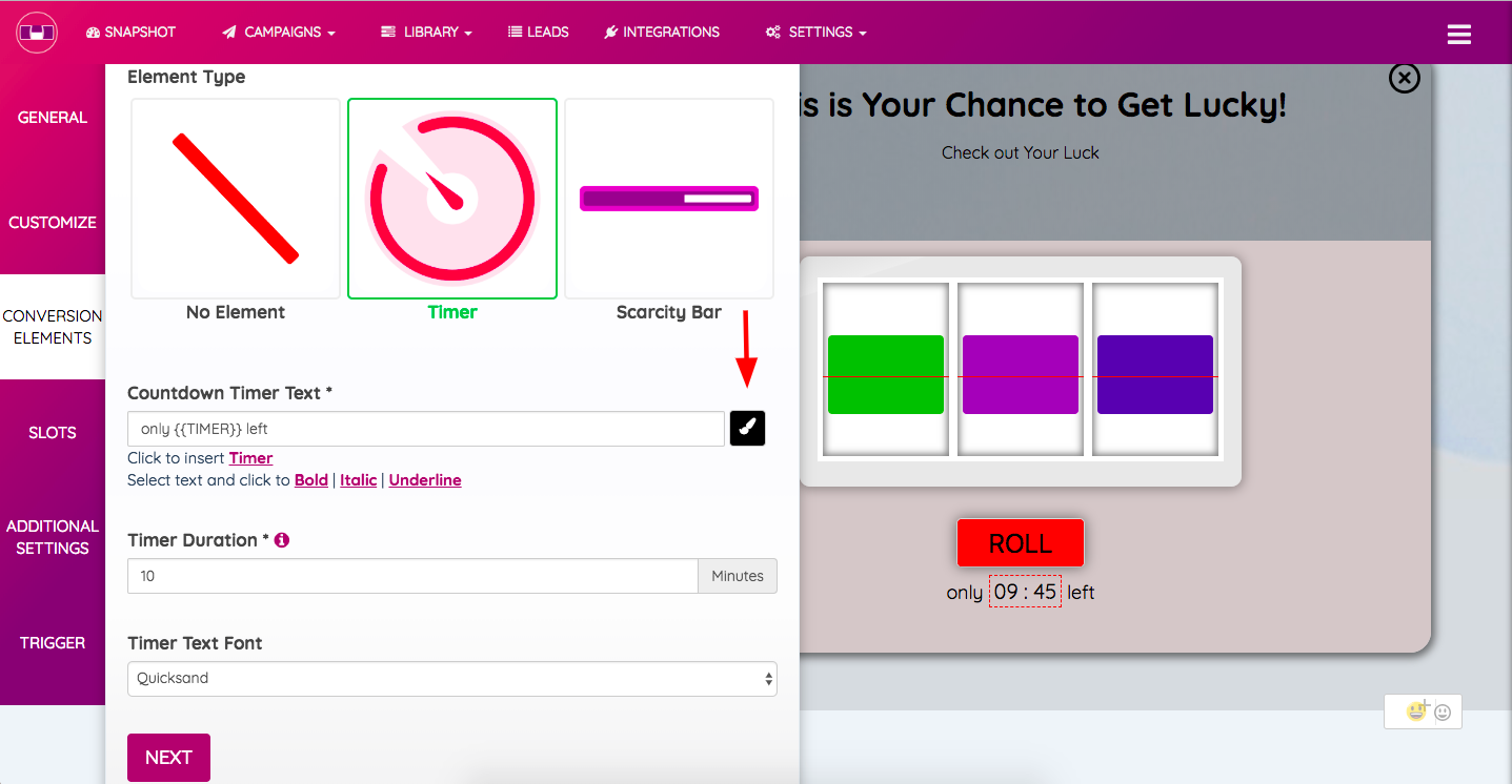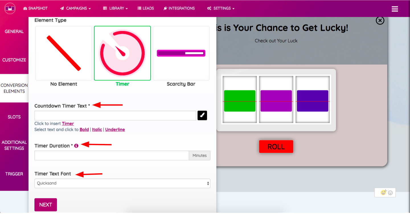 In LetSlot.io Dashboard, you can choose to display various types of “Conversion Elements” in the Slot Machine.