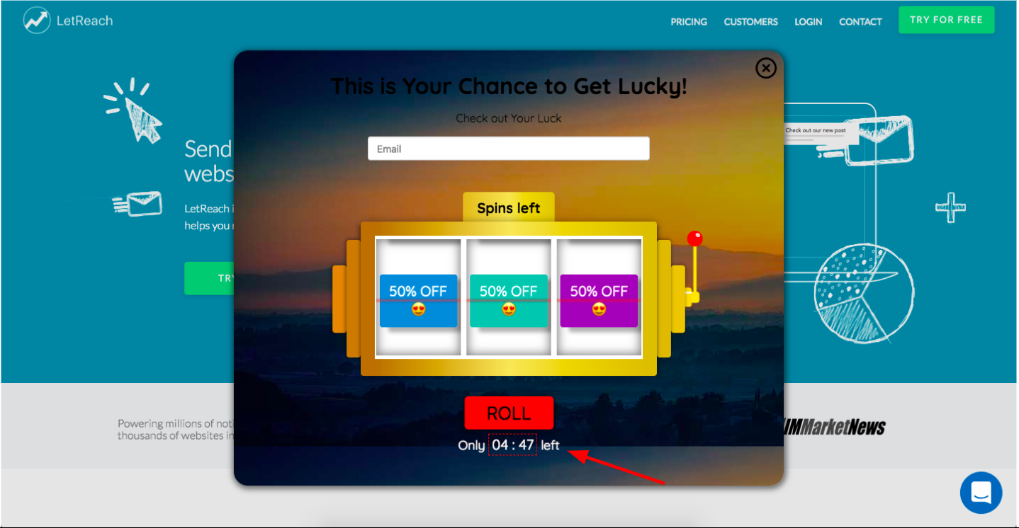 It creates Fear of Missing Out (FOMO) amongst the website visitors and entices them to ultimately spin the Slot Machine.