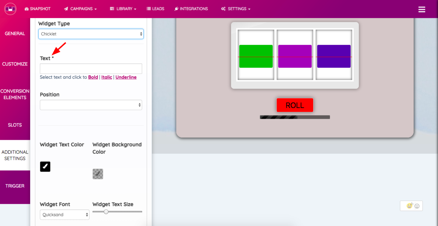 1. Text - In the Text section, you are required to write the text that you wish to display on the Chicklet.
