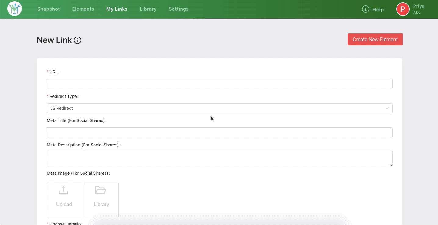 Step 1: In your LetMailbox dashboard, go to My Links >> Create New Link.