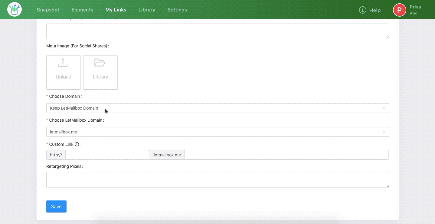 Step 4: Choose the domain on which your link would be cloaked. In case you Choose LetMailbox Domain your link would be cloaked on letmailbox.me/. However, in case of Whitelabel Domain, your link would be cloaked on yourwhitelabeldomain.com.